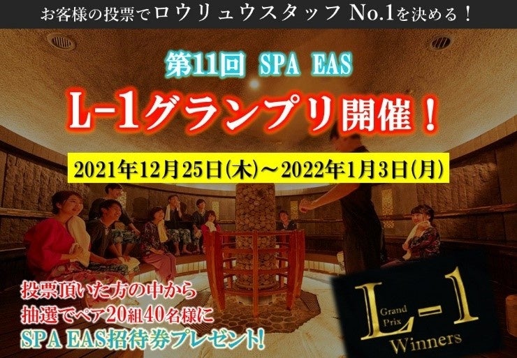 当社グループ連結子会社である株式会社ミツウロコ(本社:東京都千代田区 代表取締役社長:田島 晃平)が運営するリラクセーション施設「横浜天然温泉SPA EAS(スパ イアス)」は2021年12月25日(土)から2022年1月3日(月)にロウリュウスタッフ人気NO.1を決定する「第11回L-1グランプリ~熱波に酔いしれろ~」を開催します。