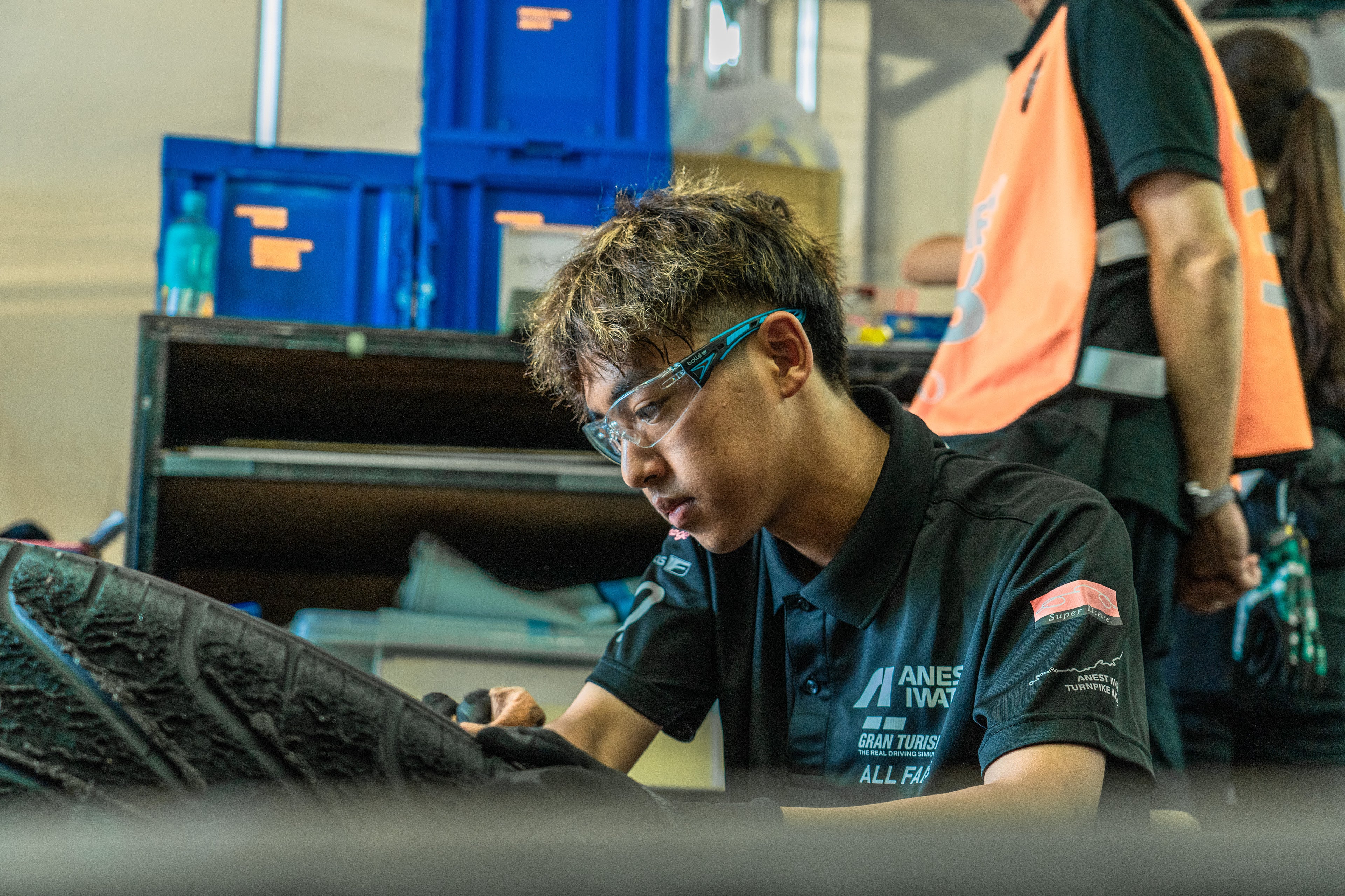 当社はANEST IWATA Racing with ArnageとしてSuper GTに参戦しており、レーシングカーを整備するエンジニアも着用しました。