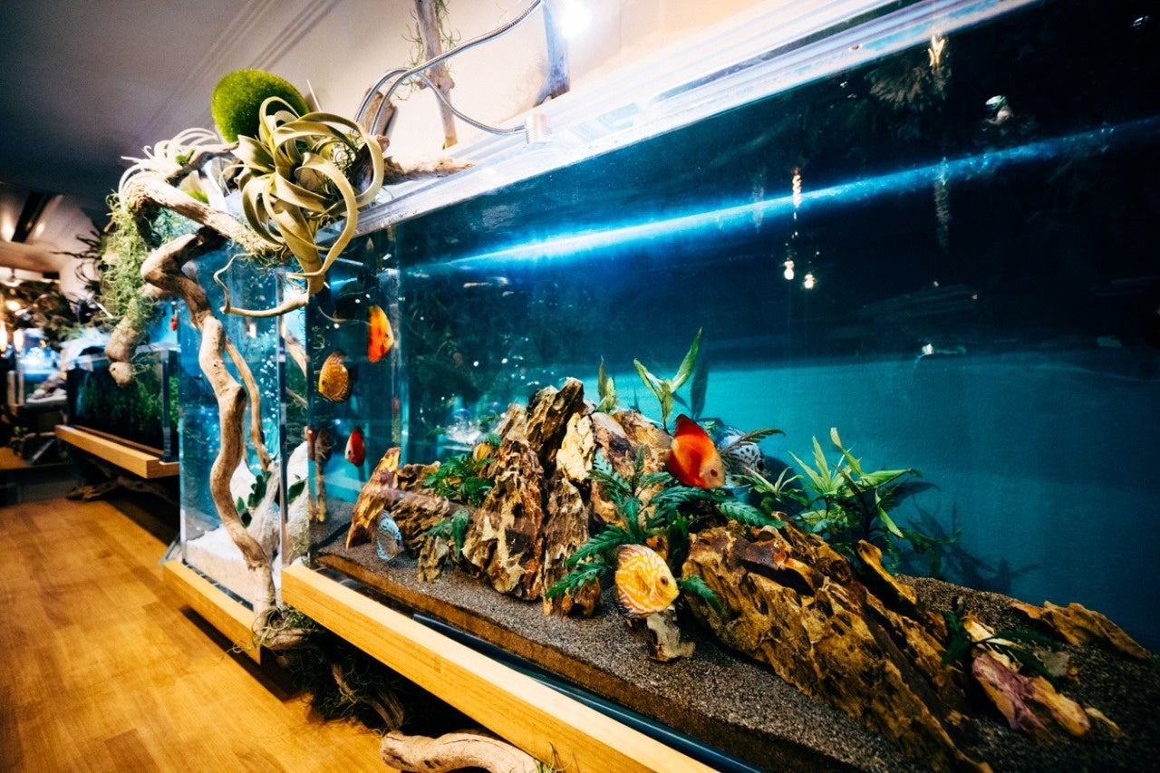 【4F天空の潤い:熱帯魚・草花で演出した森の中に迷い込む、冒険心くすぐる世界】