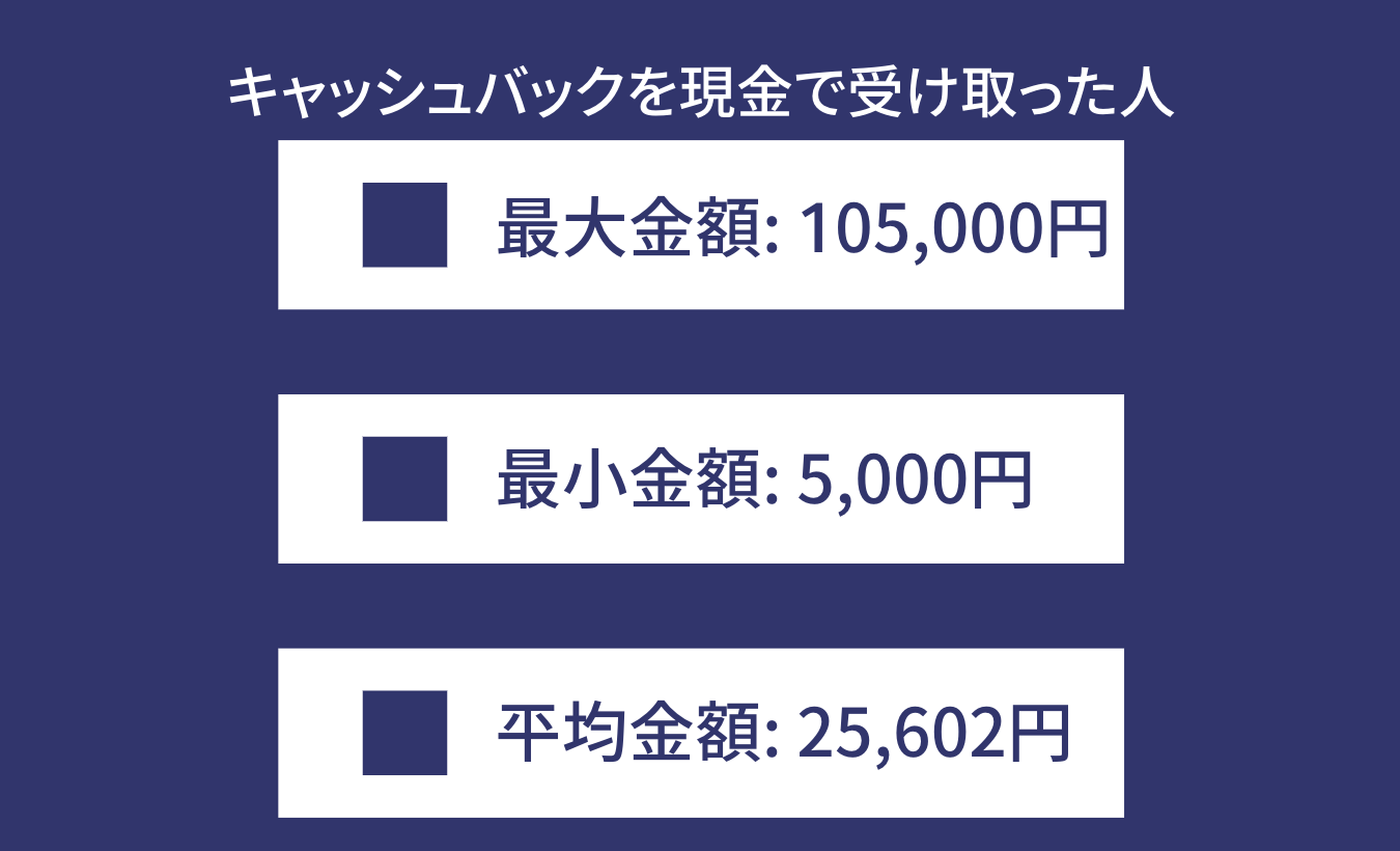 半数以上の人が「キャッシュバックは『あった』」と回答しました。キャッシュバックの金額について調査すると以下のような結果でした。