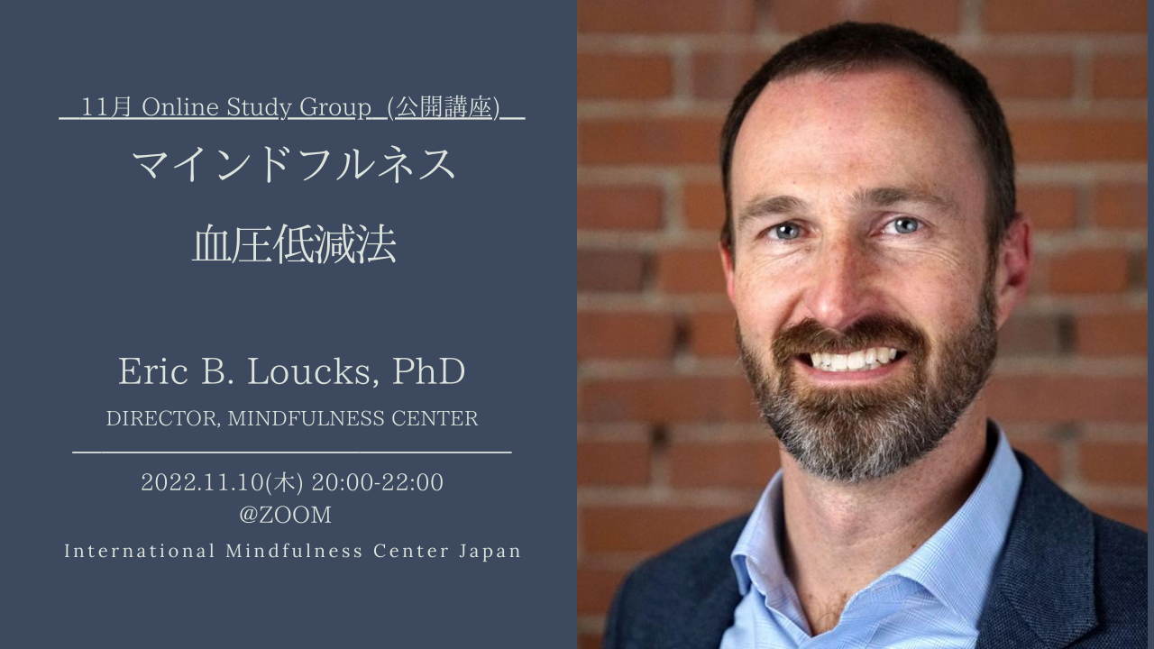 Eric B. Loucks氏ウェビナー『マインドフルネスと血圧低減~マインドフルネス血圧低減法のご紹介~』11月10日(木)