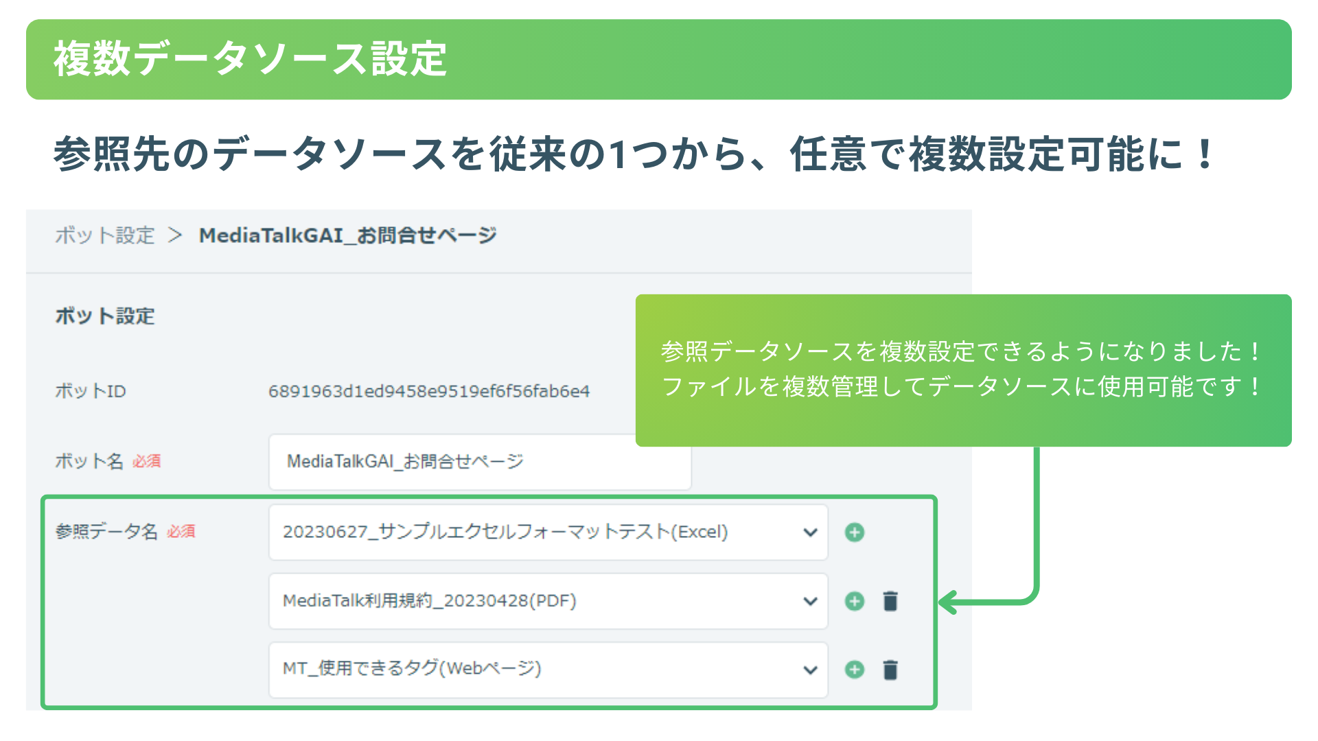 4.データソースの複数参照:参照先のデータソースを従来の1つから、任意で複数設定可能に!