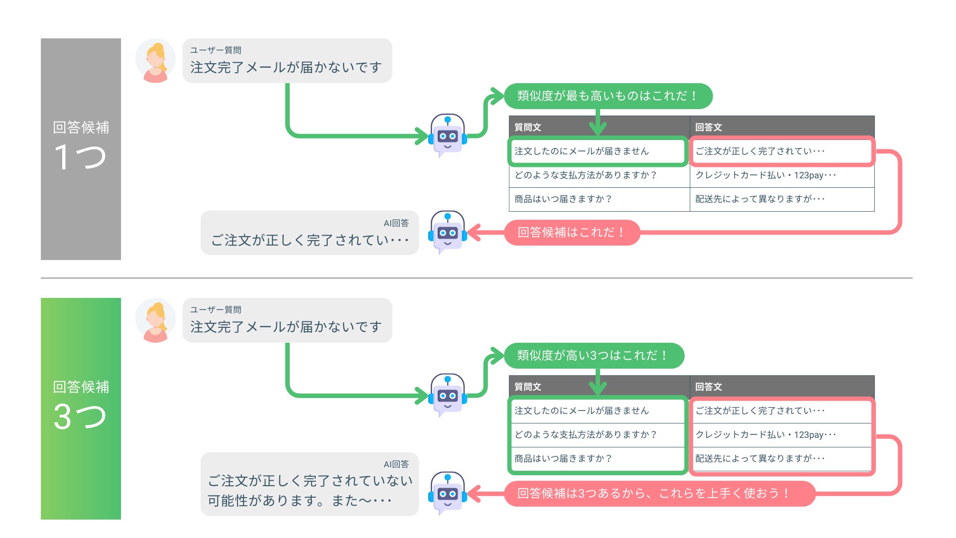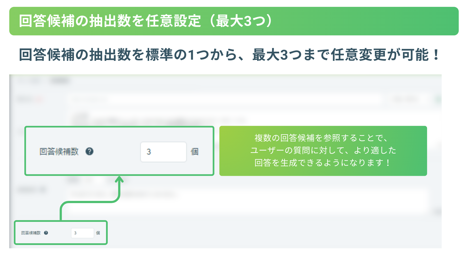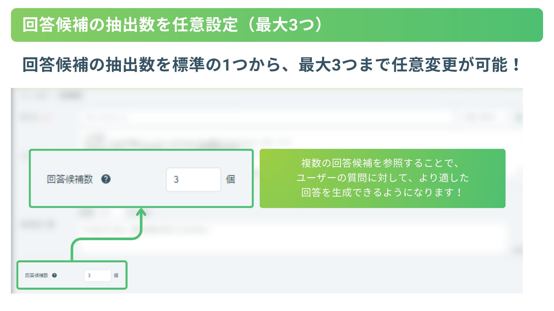 3.回答候補の抽出数拡張(最大3つ):回答候補の抽出数を標準の1つから最大3つまで任意変更が可能に!