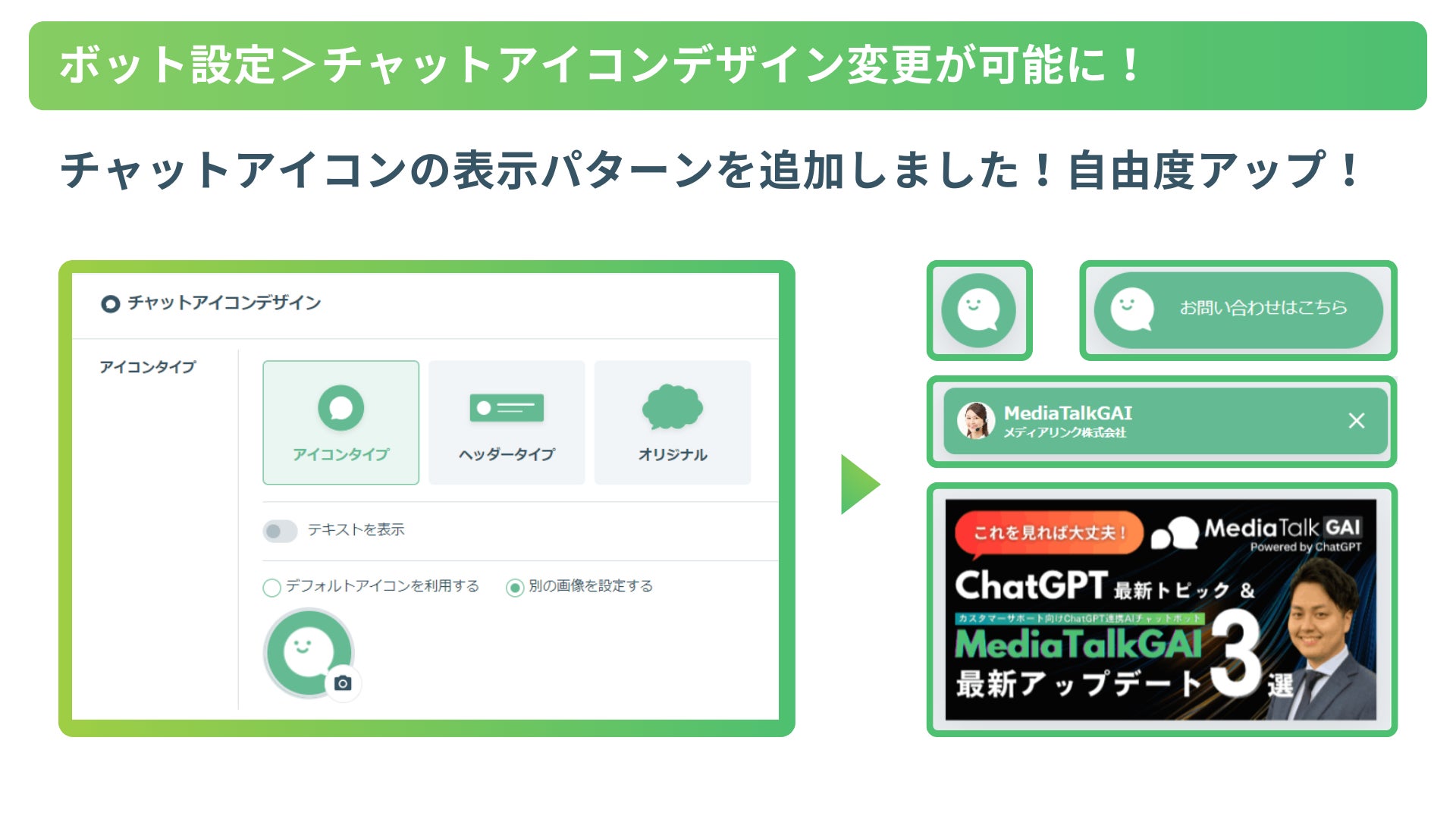 5.チャットアイコンデザイン変更:チャットアイコンデザインを自由にカスタマイズ可能に!