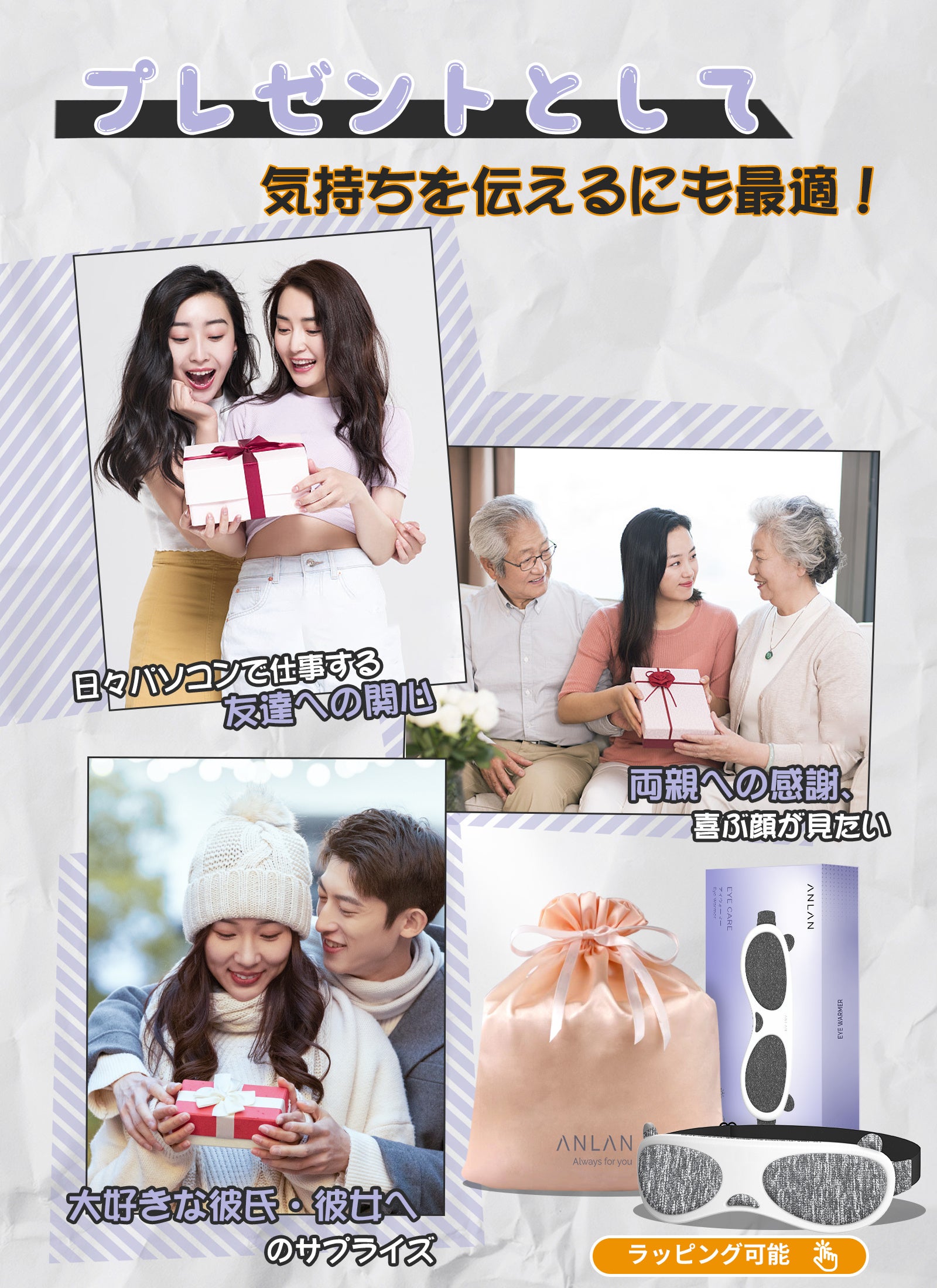 ANLANアイウォーマーは、目の疲れを和らげるために最適な加熱マッサージと振動モードを採用しています。内蔵の加熱パッドは、38℃~42℃の快適な温度を提供し、眼精疲労/むくみを緩和するのに最適です。
