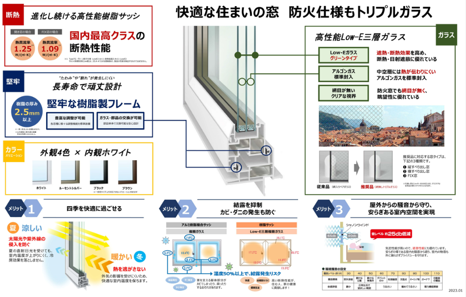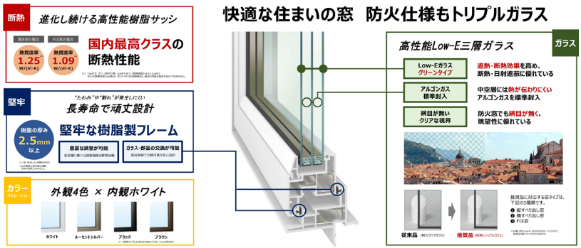 ○トリプルガラス採用「高性能断熱サッシ」・防耐火構造の国土交通大臣認定を取得した外壁