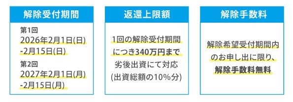 ※追加募集への申込総額が解除希望総額に満たない場合、解除希望額全額の解除ができず、一部解除となる場合がございます
