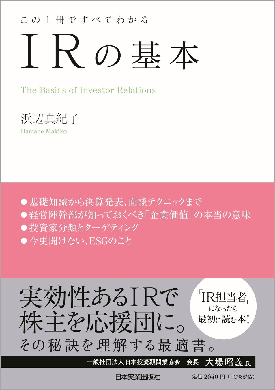 「IRってそもそも何?」「機関投資家や個人株主との向き合い方は?」「ESGとは?」「投資家とどんな話をするべき?」誰もが持つ疑問に、20年以上IRに携わってきた著者が答える決定版。