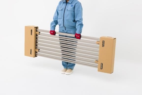 また梱包も簡易化でき、輸送の際、約40%積載効率が向上(4tウィング車での輸送を仮定した当社従来製品との比較)することでCO₂排出量の削減にも貢献し、さらにパネル梱包には段ボールのみを使用するなど、梱包資材を削減することにより、環境に配慮した製品となりました。