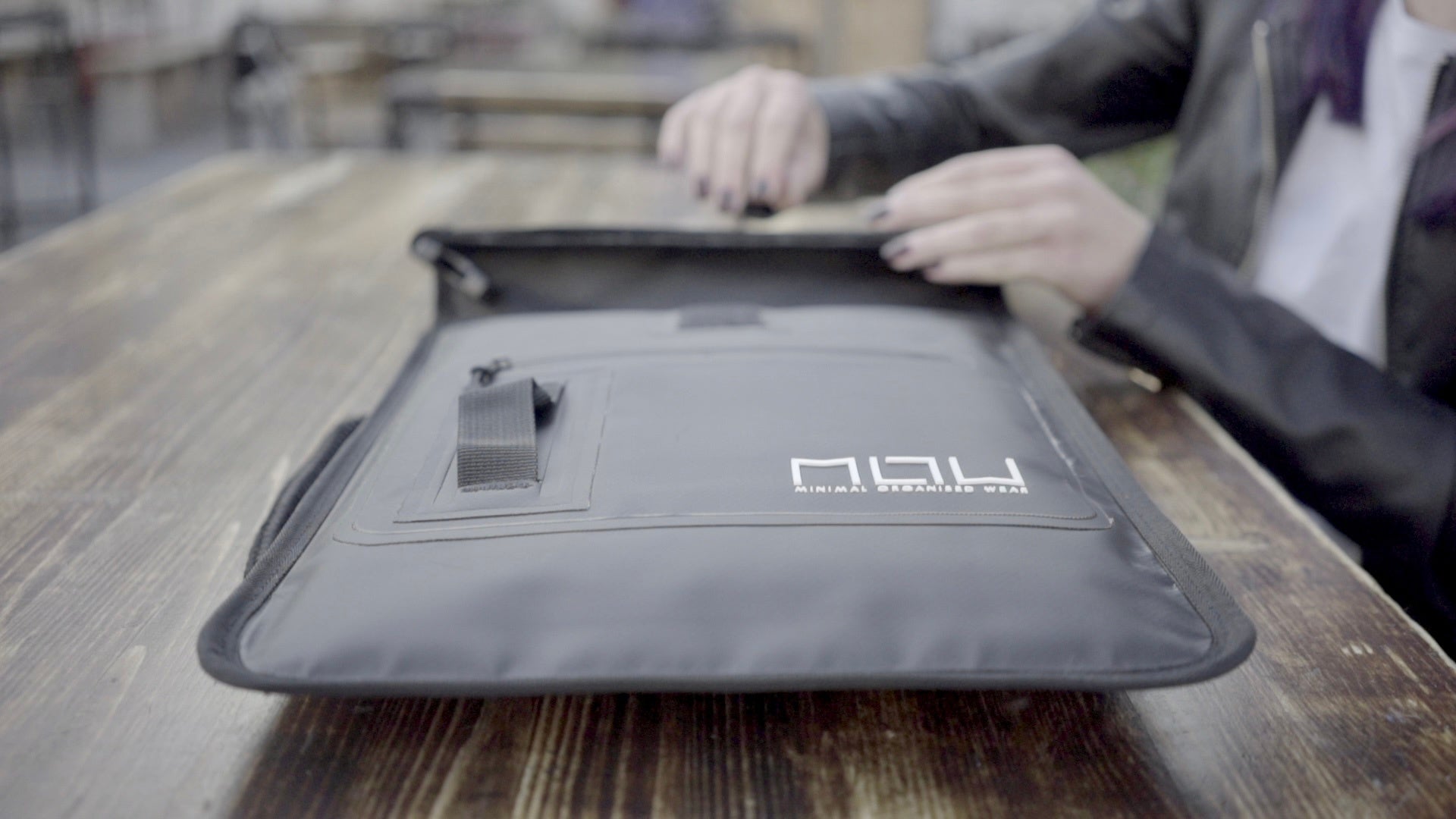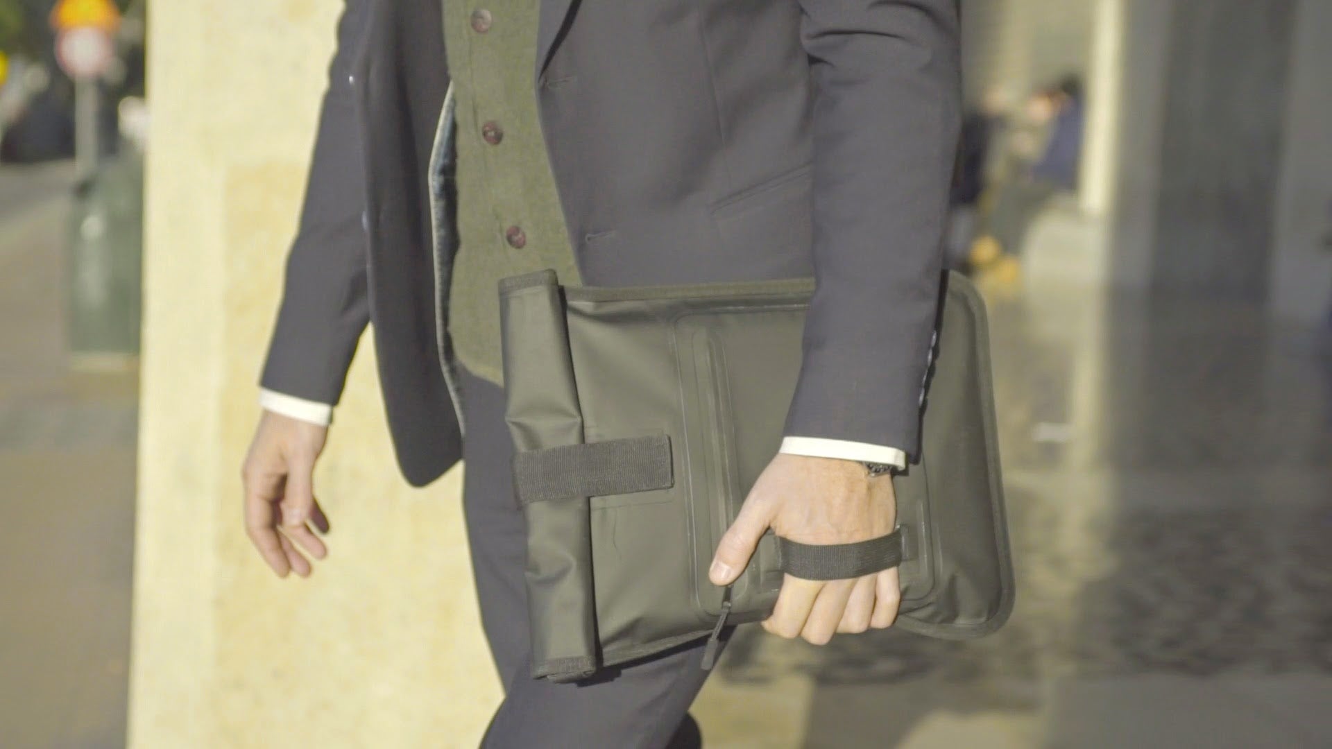 単体での利用にも優れ、ちょっとしたリモート作業や会議室の移動の際に、クラッチバッグやバックパックとして使用することが可能。