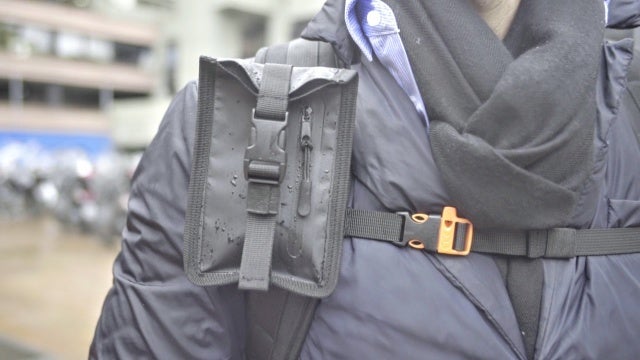 続いて、バックパックに接続可能な小物用ポーチ。日常の小さな小物から、アクティブシーンの濡れ物などバックパックとは分けて管理したい物の収納に役立ちます。