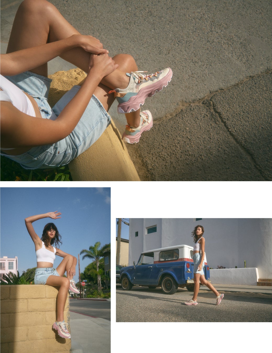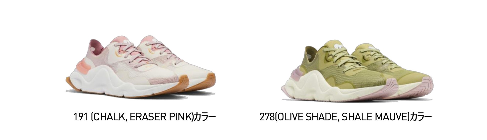 | 素材 | ■アッパー(全カラー): リサイクルドポリエステルメッシュ、TPU フィルム、 合成スエードライニング(踵部のみ) ■ミッドソール(全カラー):スキャロップデザインを踏襲しつつボリューミーで 軽量・高弾力ソレルオリジナル成形 EVA(10% Bloom) ■ソール(全カラー):高いトラクション性を生み出す成形ラバー |