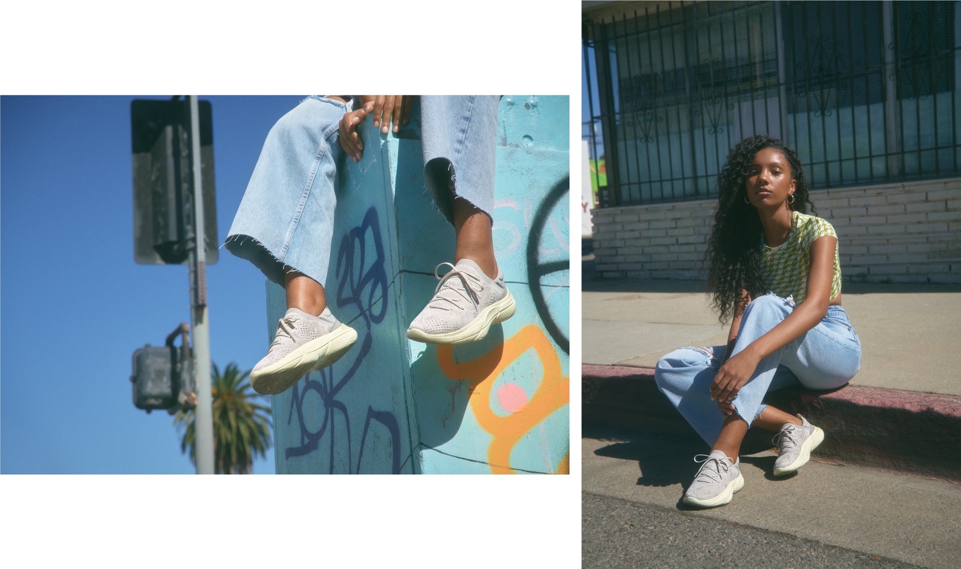 | 素材 | ■アッパー(全カラー): ニット(リサイクルドポリエステル)アッパー、シンセティックレザー ■ヒールキャップ ■ミッドソール(全カラー):軽量でクッション性の高い EVA (10%Bloom 配合) ■ソール(全カラー):高硬度EVA、ラバー |