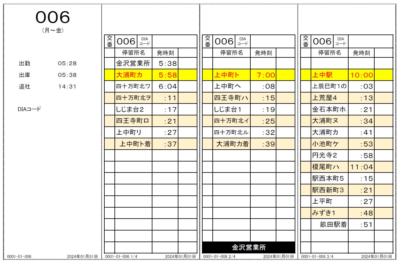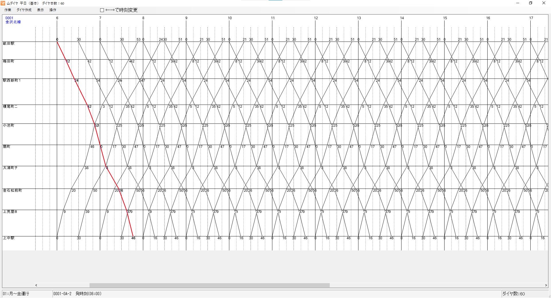 ・山ダイヤ・時刻表ダイヤ(バスの運行計画を線図や時刻表形式で表示)