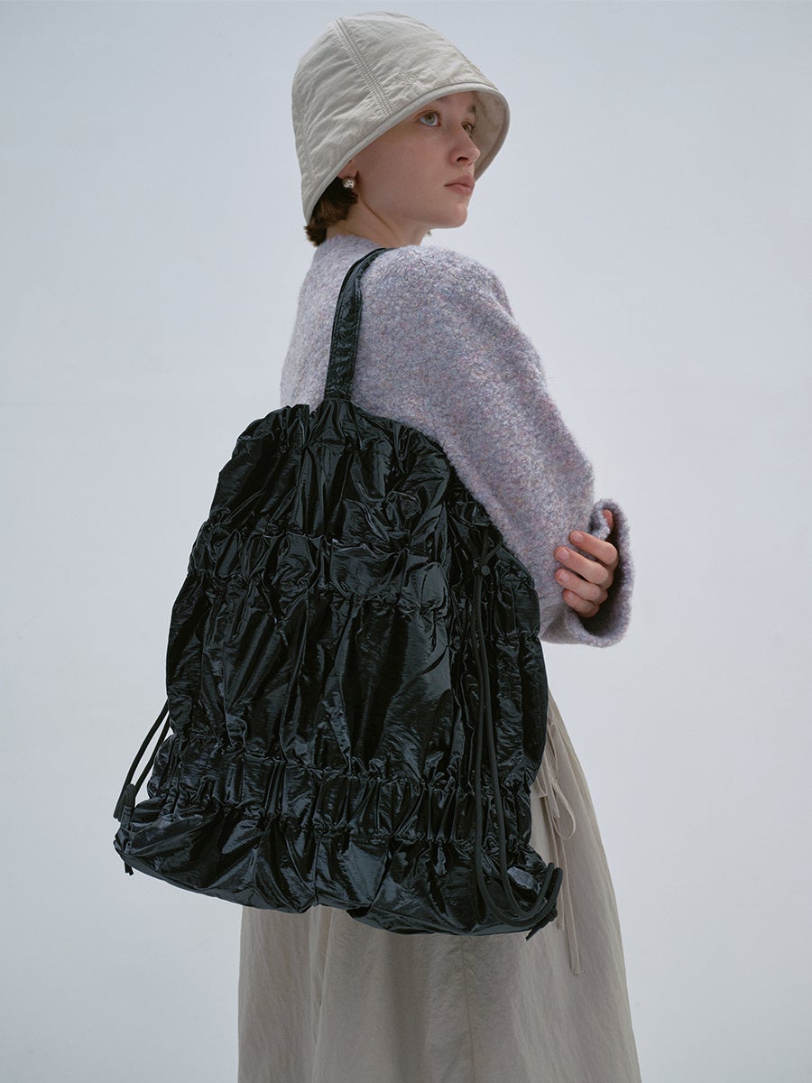 バックパックにもショルダーバッグにもなる2WAY仕様のバッグ。特徴的なプリーツがスタイリッシュな印象を与え、超軽量ながら耐久性に優れた素材は、水や汚れにも強く快適に持ち歩けます。中央のゴムバンドと底部分のクッションパッドが荷物をしっかりとホールドし、安心感のある使い心地を実現。デザイン性と機能性を兼ね備えた万能バッグです。