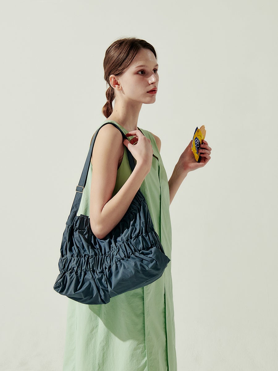 薄くて軽量なリップストップ生地を使用し、自然なドレープ感とひねりの効いたストラップが印象的なスタイリッシュバッグ。