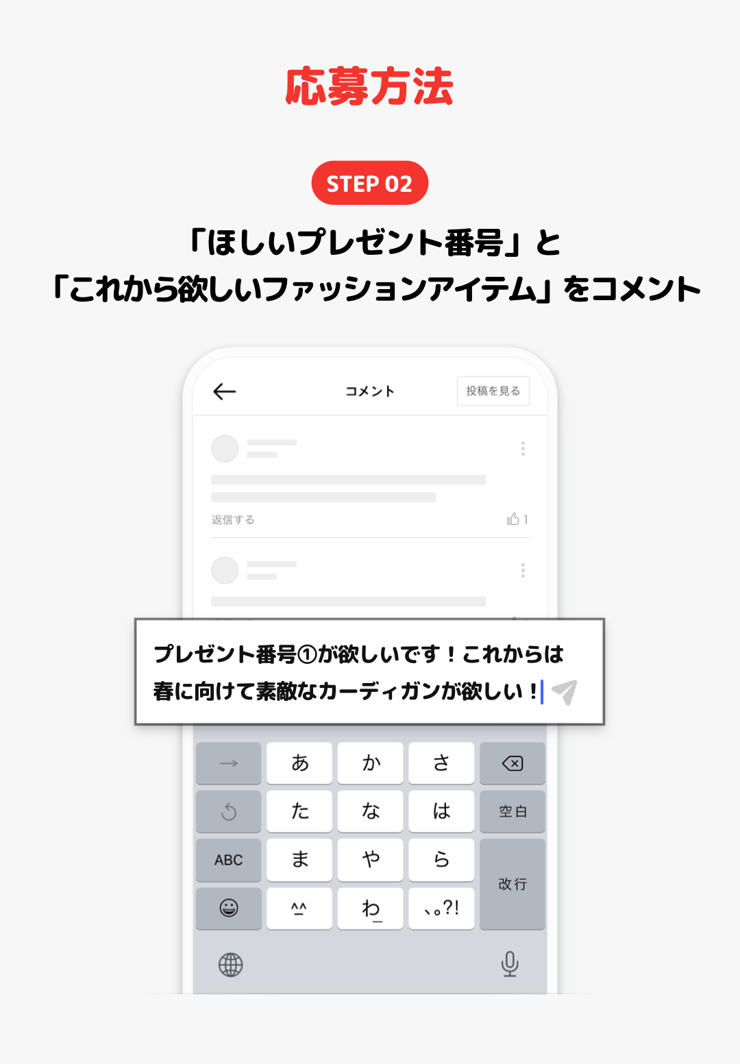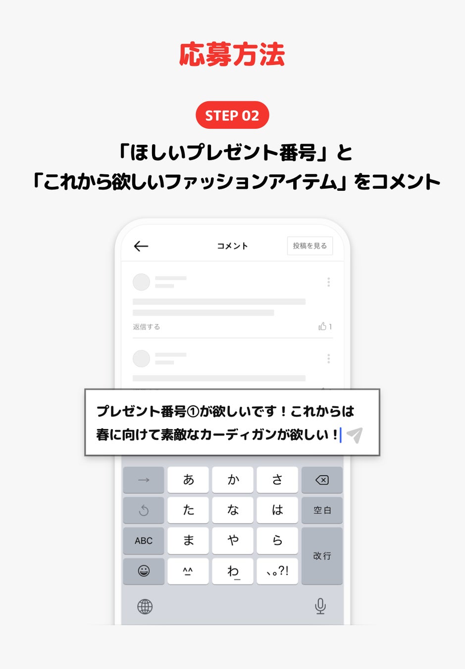 - 応募方法:Vintage.Cityアプリの「コミュニティー」内のキャンペーン記事に、欲しいプレゼント番号及びこれから欲しいファッションアイテムをコメントして応募完了。