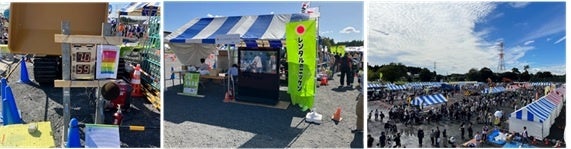 主な出展内容といたしまして、展示・撮影コーナーでは、全旋回キャリアダンプと、0.25㎥ロングリーチグラップルを展示、また体験コーナーでは、自動追従台車「かもーん」を使用した追尾体験や、騒音振動計NEOを使用した大声チャレンジコーナーも実施いたしました。他にも大型デジタルサイネージを使用した会社紹介、オンラインレンタルの紹介なども行いました。ブースへお越しいただくお客様も途切れることなく、用意した記念品も午前中で配布を終了してしまうほどの盛況ぶりでした。