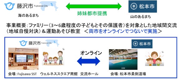 生活・健康領域のグループ企業(ティップネス、アールビーズ)と連携した健康増進の取り組みとして、姉妹都市関係にある神奈川県藤沢市と長野県松本市の親子をオンラインでつないで運動あそびと交流を行う事業を本年10月より開始します。本事業はスポーツ庁 令和5年度「Sport in Life推進プロジェクト(スポーツ人口拡大に向けた取組モデル創出事業)」の採択を受けており、本事業を通じて当社は市民の健康増進とスポーツ人口拡大を図ります。