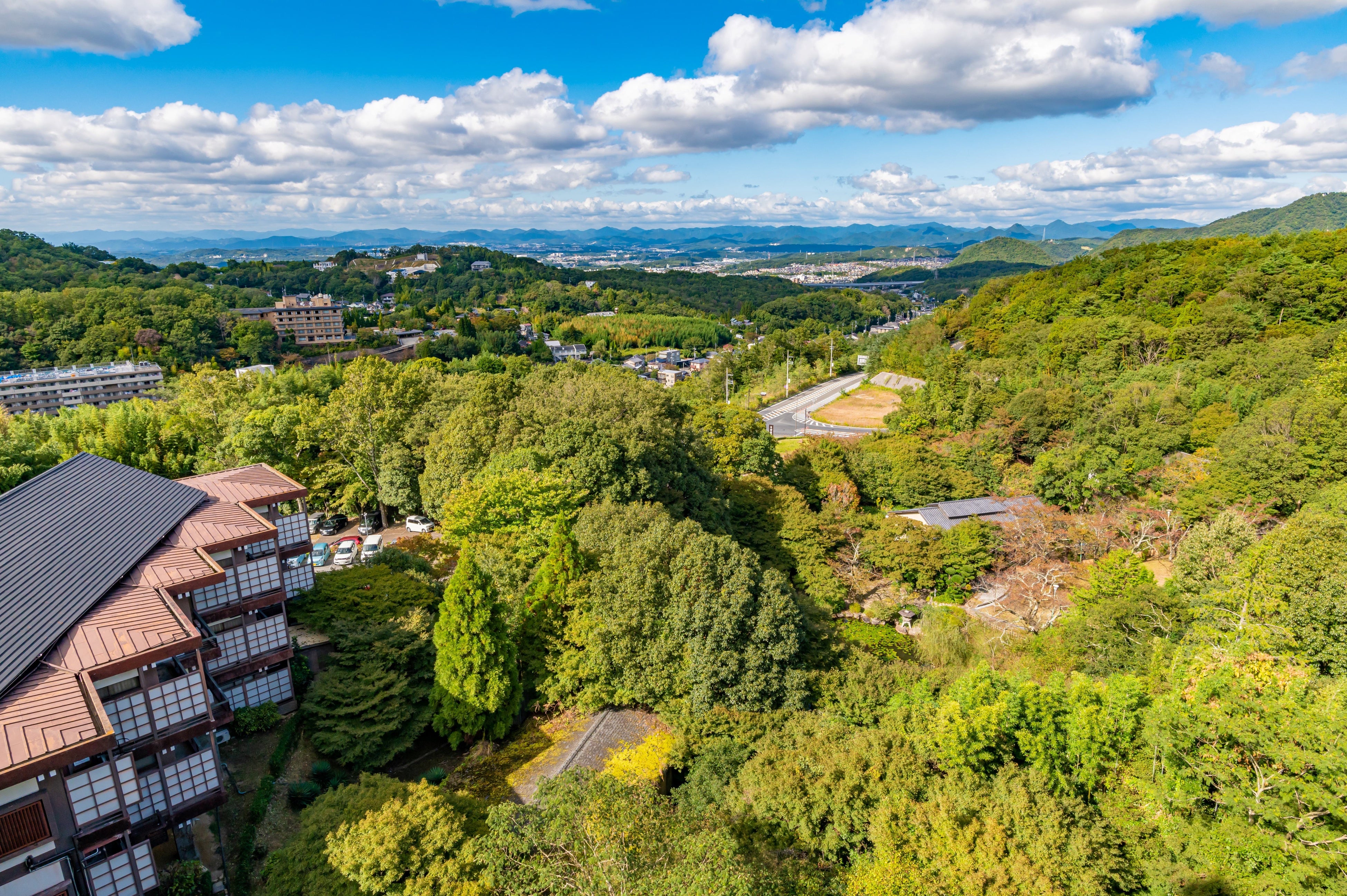 温泉街から離れた丹波の山並みを見渡す閑静な高台にあり、心も体もゆっくり癒すことのできる環境です。