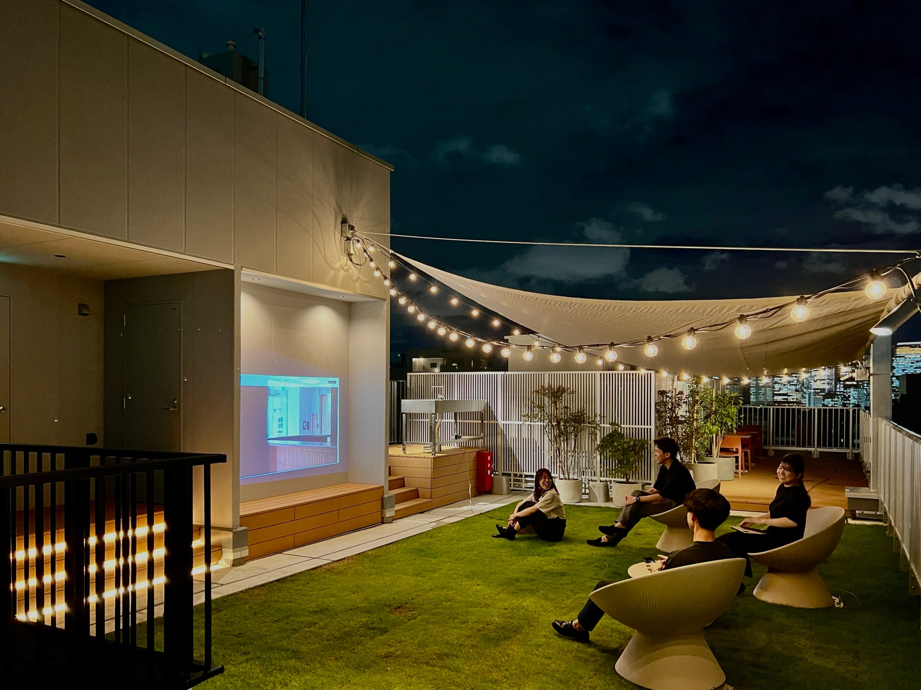 各フロアの専有部に加え、共用部には時間貸の「会議室」や「ソロブース」、社外の方とのカジュアルな打ち合わせにも使える「テラス付きラウンジ」、社内ミーティングや貸切イベント等の開催もできる「屋上テラス」も設けています。