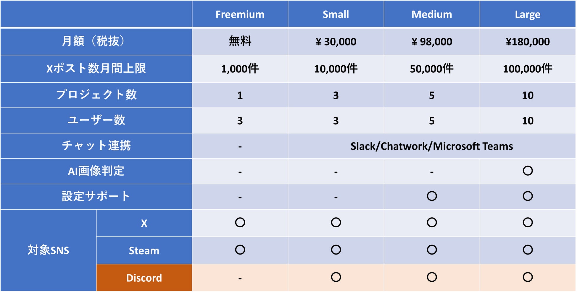これまで「Oreo」の監視対象はX / Steamのみでしたが、今回のアップデートによりDiscordの監視も可能となります。 Discordのテキストチャンネルから自動で投稿データを収集し、ポジティブ・ネガティブ・バグなどのカテゴリー分けを行ったり、健全な運営を妨げる不正リンクを通知するなどさまざまな形での利用を可能にすることで、Discordの公式コミュニティを運営されている皆さまをご支援します。