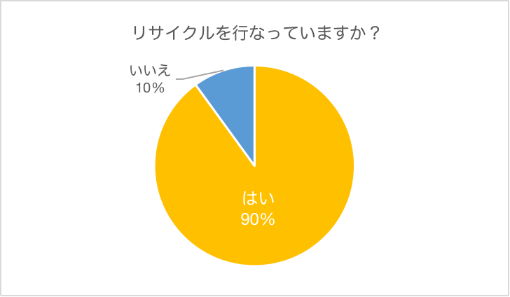 3Rの3つ目のキーワードである「リサイクルを行なっていますか?」という質問では、全体の90%が「はい」と回答。