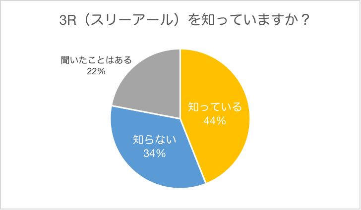 ごみの削減に繋がる3つの取り組み「3R(Reduce・Reuse・Recycle)」は、 全体の44%が「知っている」と回答。