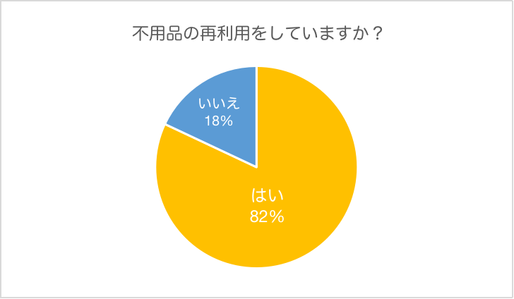 「不用品の再利用をしていますか?」という質問では、全体の82%が「はい」と回答。
