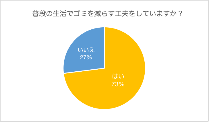 「普段の生活でごみを減らす工夫をしていますか?」という質問では、73%が「はい」と回答。