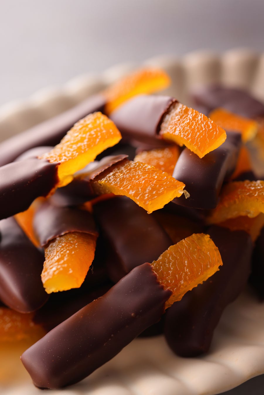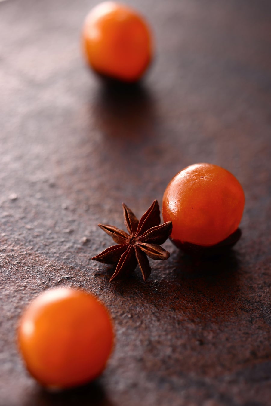 金柑を密漬けにし、ビターチョコレートにディップ。夕焼けのように鮮やかな金柑とチョコレートのコントラストが見た目にも鮮やかです。