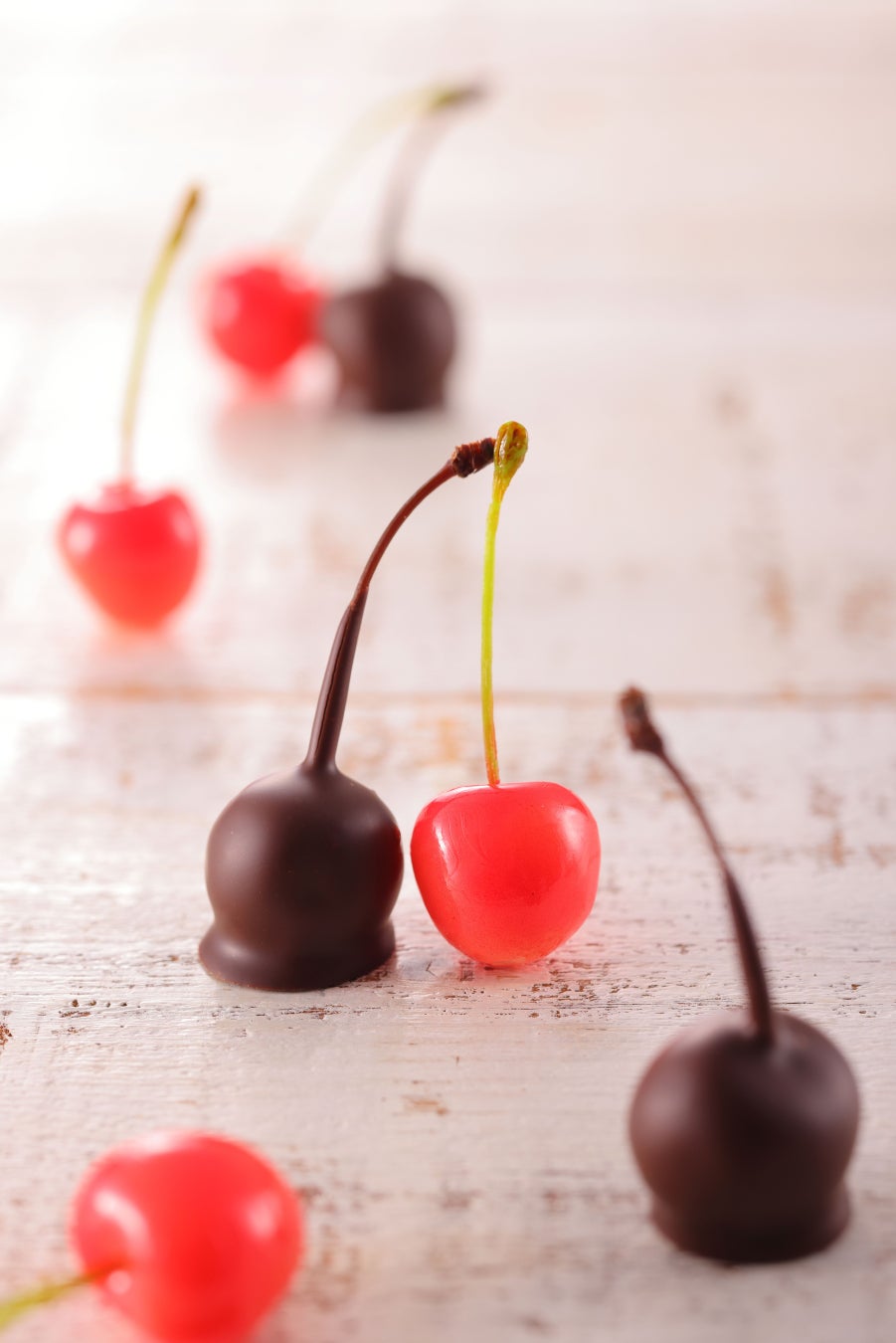 山形県産のさくらんぼをブランデーに漬け込み、キルシュのフォンダン、ビターチョコレートでコーティング。