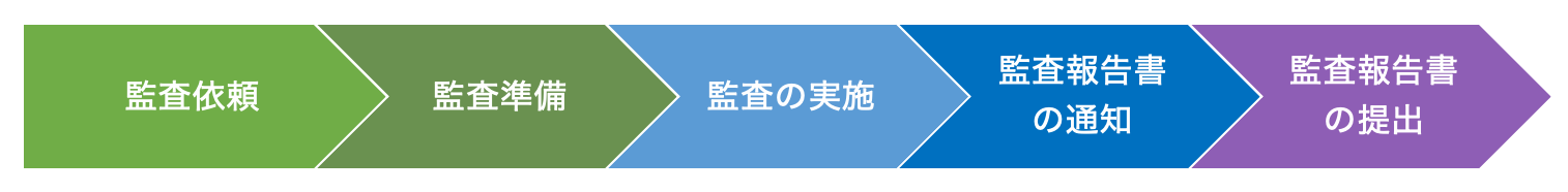監査実施:運営状況をふまえて監査実施の可否を判定、監査契約成立後に監査実施