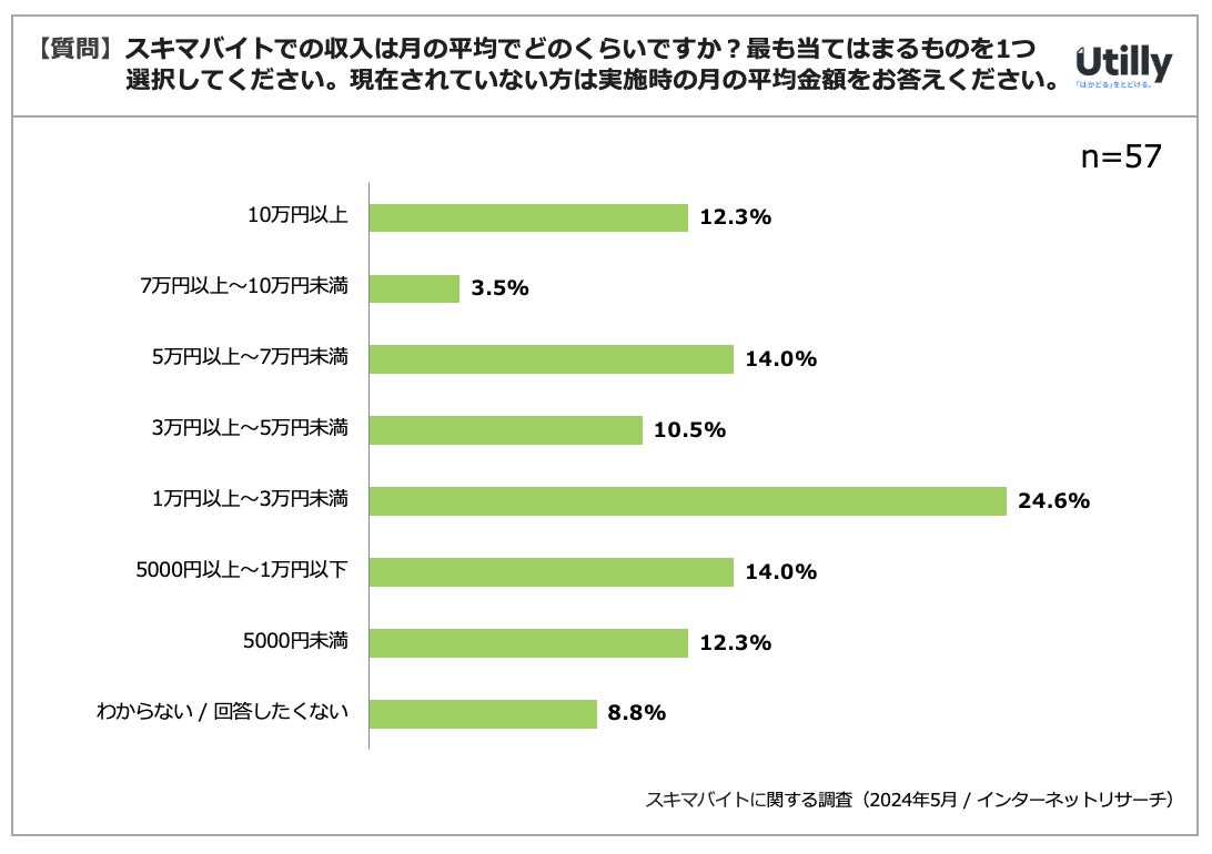 Q. スキマバイトでの収入は月の平均でどのくらいですか?最も当てはまるものを1つ選択してください。現在されていない方は実施時の月の平均金額をお答えください。