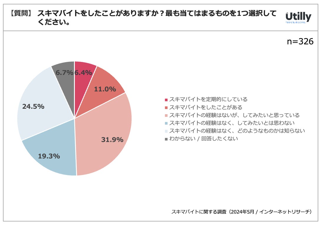 法人SaaSの比較メディアUtilly(運営会社:株式会社GO TO MARKET、所在地:東京都渋谷区)では、2024年5月にスキマバイトに関する調査を実施しました。