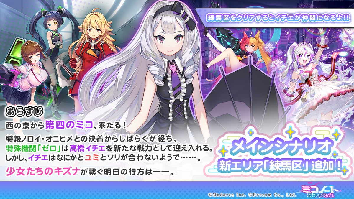 『ミコノート』のメインシナリオ第1部に新たなエリア「練馬区」を、本日8日(火)のメンテナンス終了後から追加致します。
