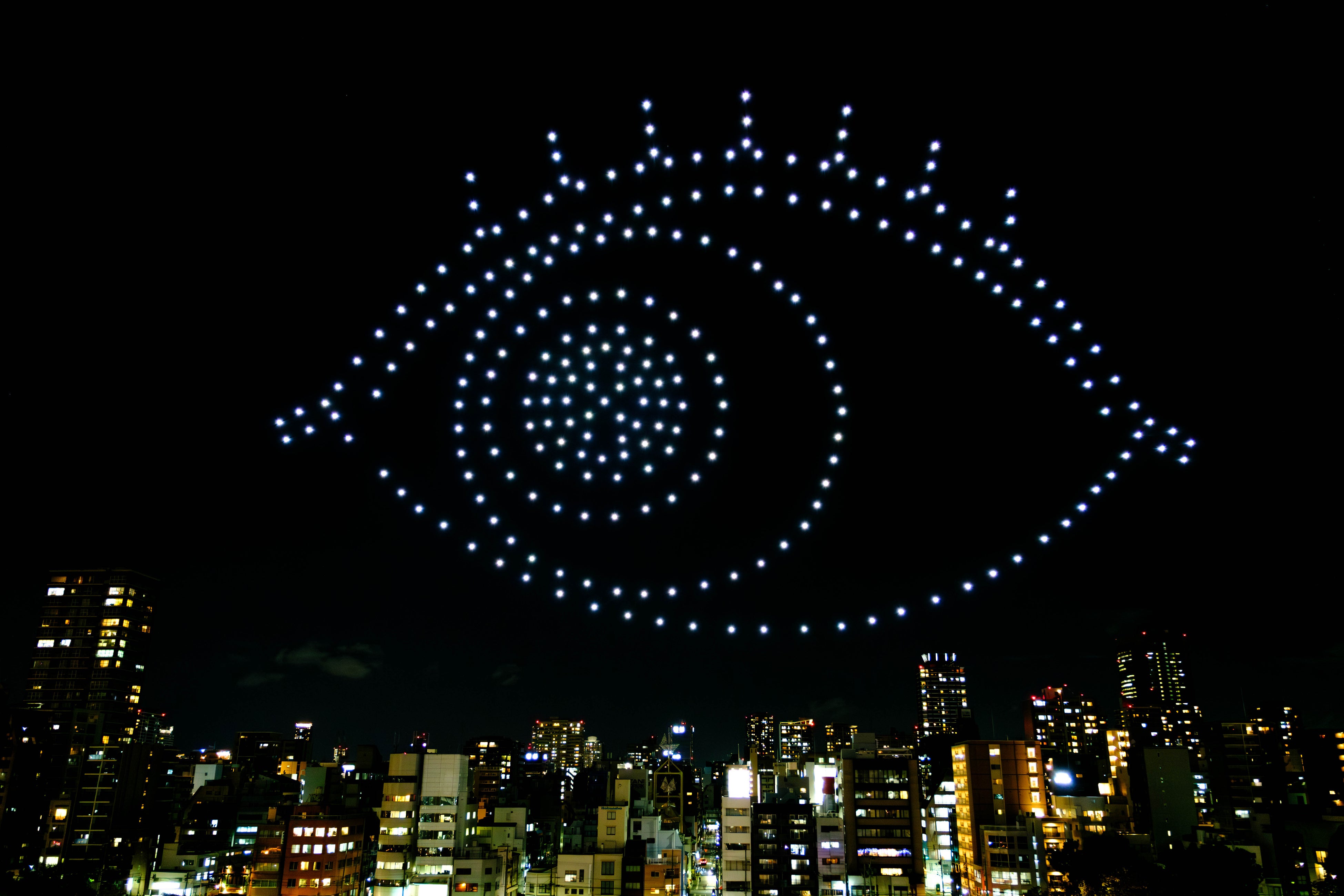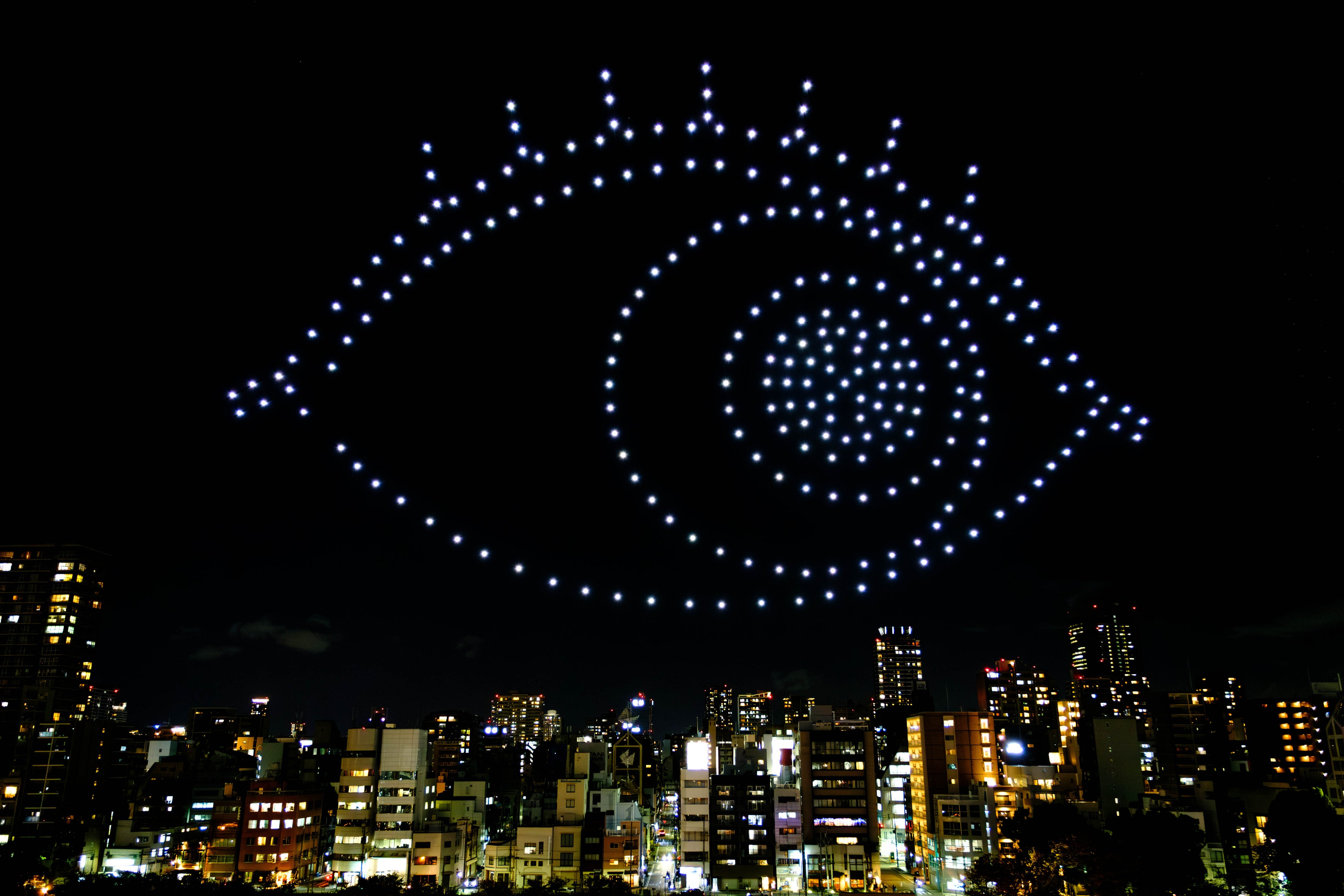 こちらはロート製薬株式会社(本社:大阪府大阪市、社長:杉本雅史)制作によるもので、つかれた目を休めるためには、遠くを見ることがオススメとなり、地上100mの大阪の夜空を舞台にドローンショーを開催いたしました。上空にはドローンによる全長100mの巨大な目が登場し、ドローンの動きと一緒に目を動かすことで目の運動が出来る、大変ユニークなドローンショーとなりました。