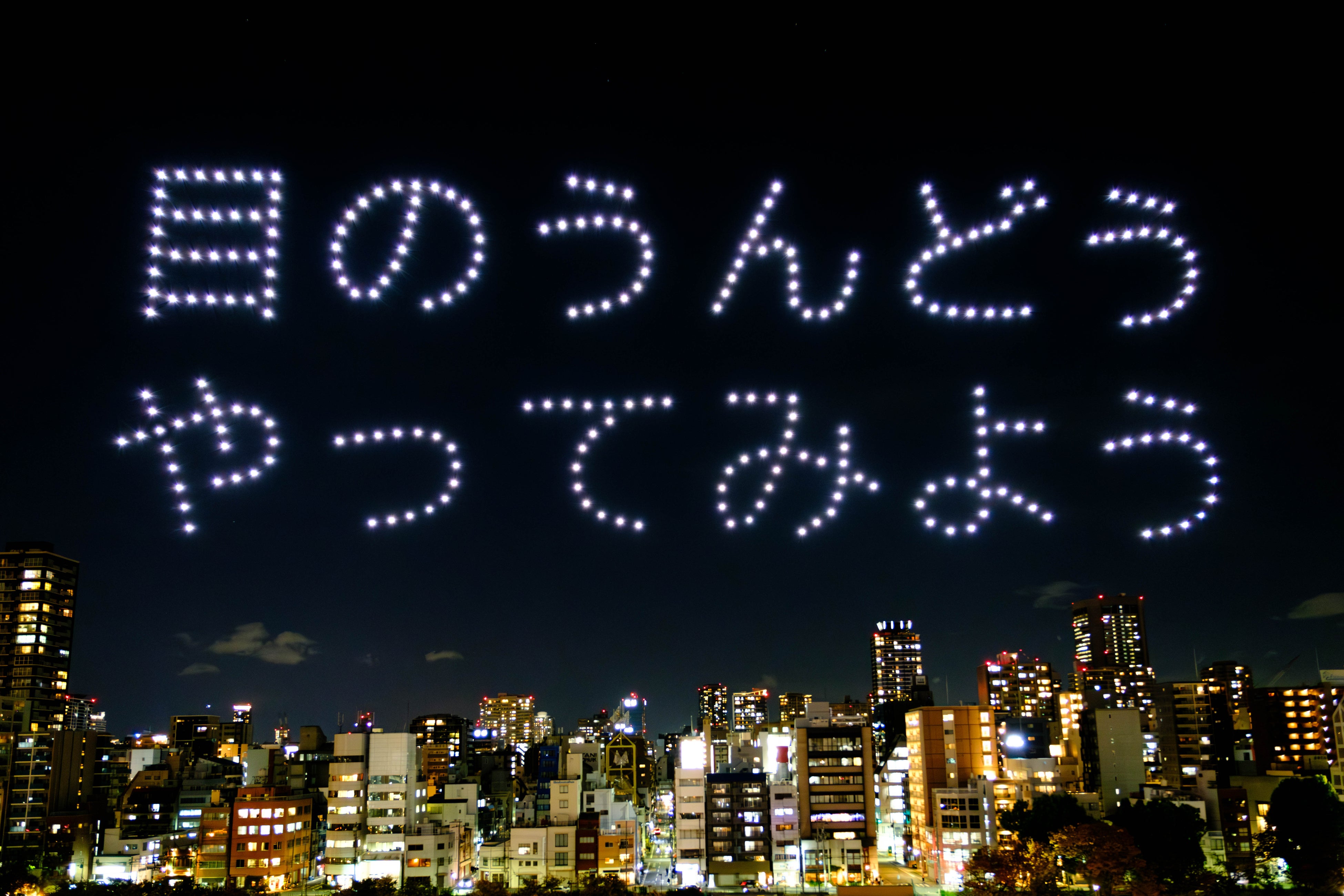 10月10日「目の愛護デー」に「ロート製薬・目の愛護ショー」を担当!夜空のドローンショーを観ながら目のストレッチ