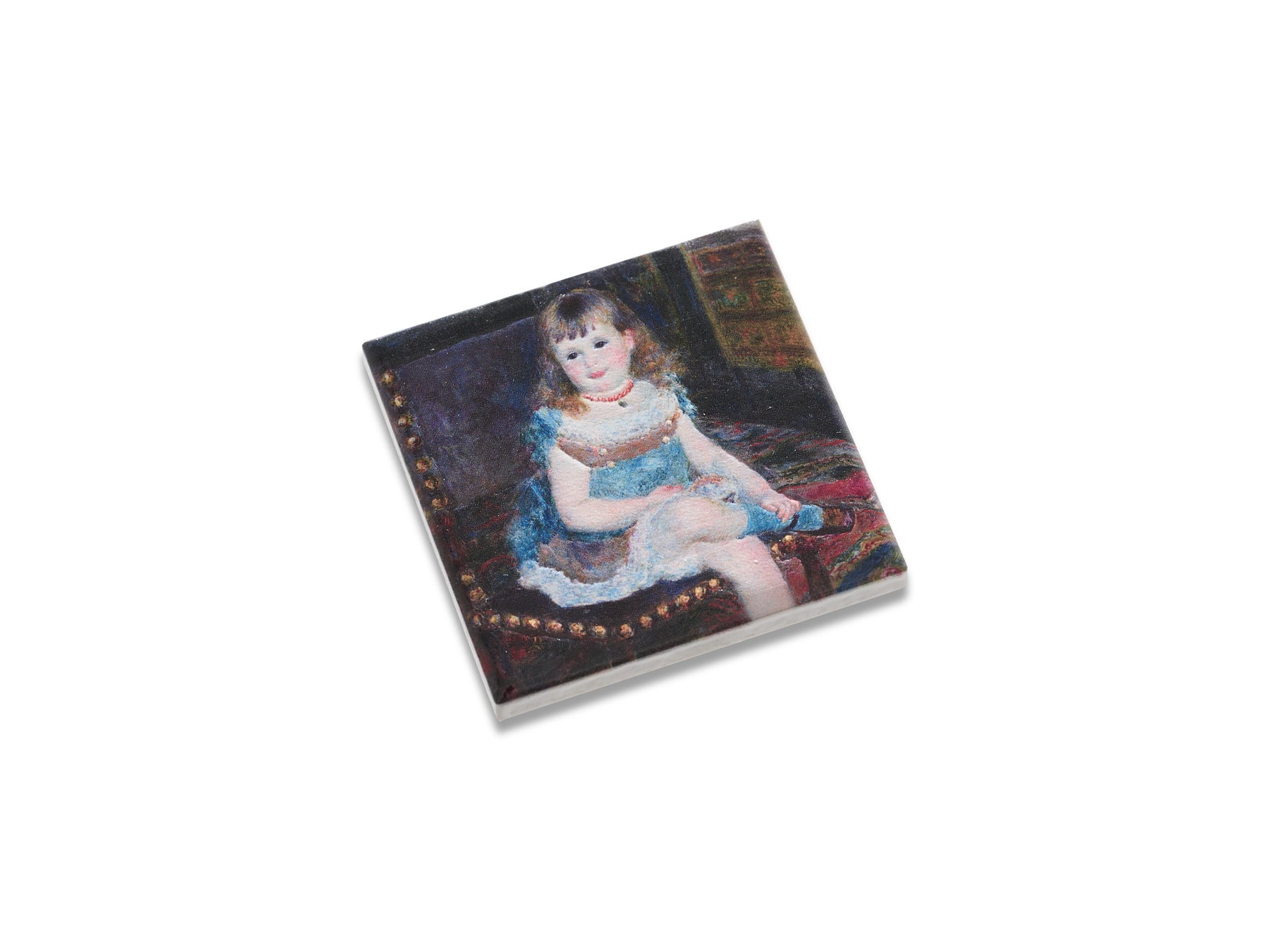 ルノワールと親交の深かったシャルパンティエ家の一人娘、ジョルジェットの姿を描いた肖像画です。青色のドレスを着た少女のやわらかい表情やふっくらとした肌の質感を表現するために、輪郭線をぼかすように緩やかな起伏をつけており、背景の凹凸も控えめにすることで少女の存在感を際立たせています。モデルのくつろいでいる雰囲気をそのままマグネットに閉じ込めました。