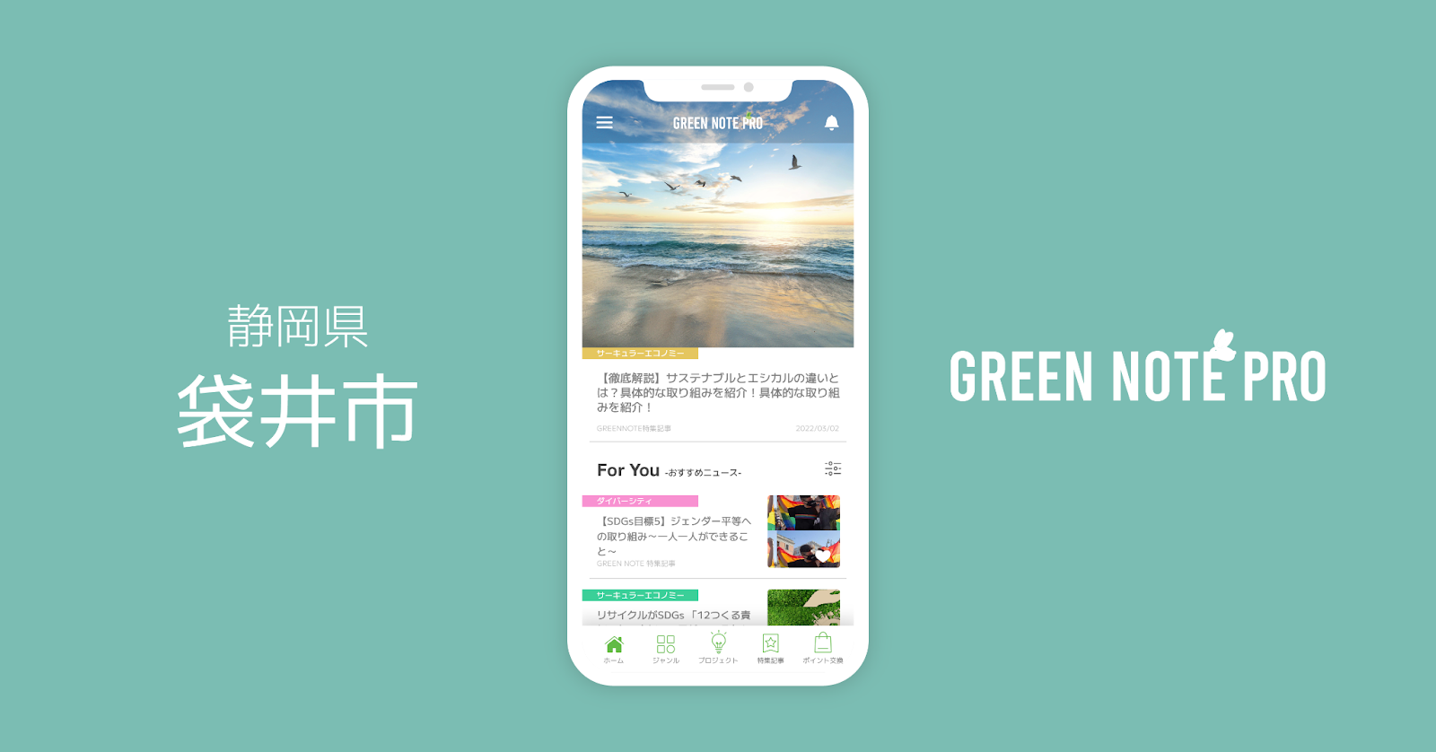 静岡県袋井市が「GREEN NOTE PRO」を導入開始|企業向けサステナビリティ/SDGs専門情報アプリ