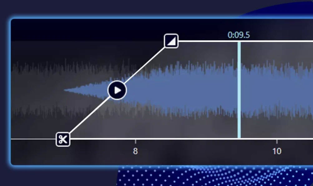 新しい編集機能では、曲を全体的に表示します。曲の始点と終点をマイクロ秒単位で編集したり、フェードインやフェードアウトを追加することができます。さらに、音量調整も可能です。