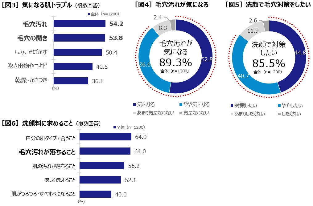 - 気になる肌トラブル第1位は「毛穴汚れ」。9割が気になる毛穴汚れを「洗顔」で対策したい