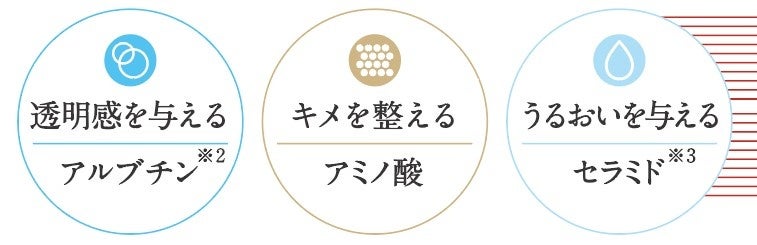 "3種の透輝肌サポート成分"配合で、乾燥によりくすんだお肌をもっちり透輝肌へ導きます。