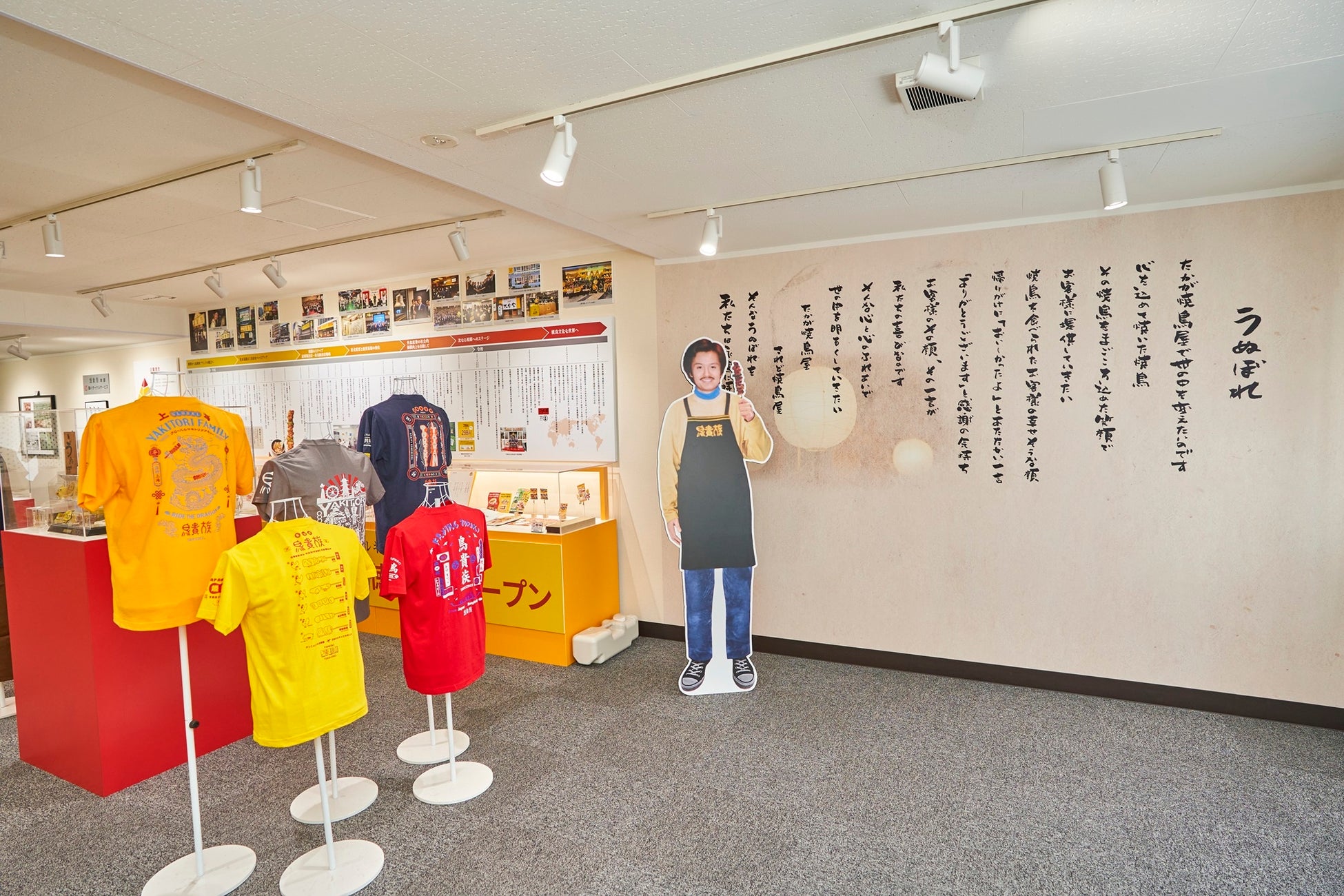 「この街から、世界へ」をコンセプトに、鳥貴族の歩みがわかる年表や、大倉が自身を奮い立たせるために書いた決意の「書」、バイブルとして繰り返し読んでいた本を展示するほか、歴代のメニューやノベルティグッズなどを展示しています。「創業時の大倉社長 等身大パネルのフォトブース」もご用意しておりますので、ぜひご撮影ください。