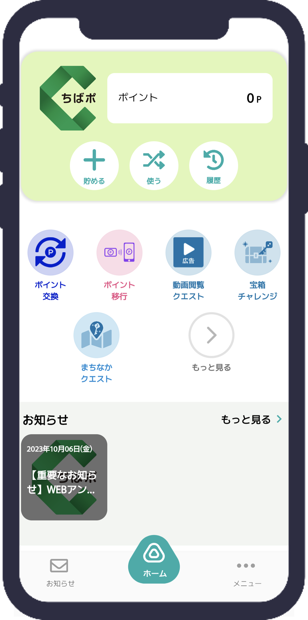 ポイント移行 | 「ちば風太WAON」カードで貯めた「ちばシティポイント」を アプリに移行できます。 |