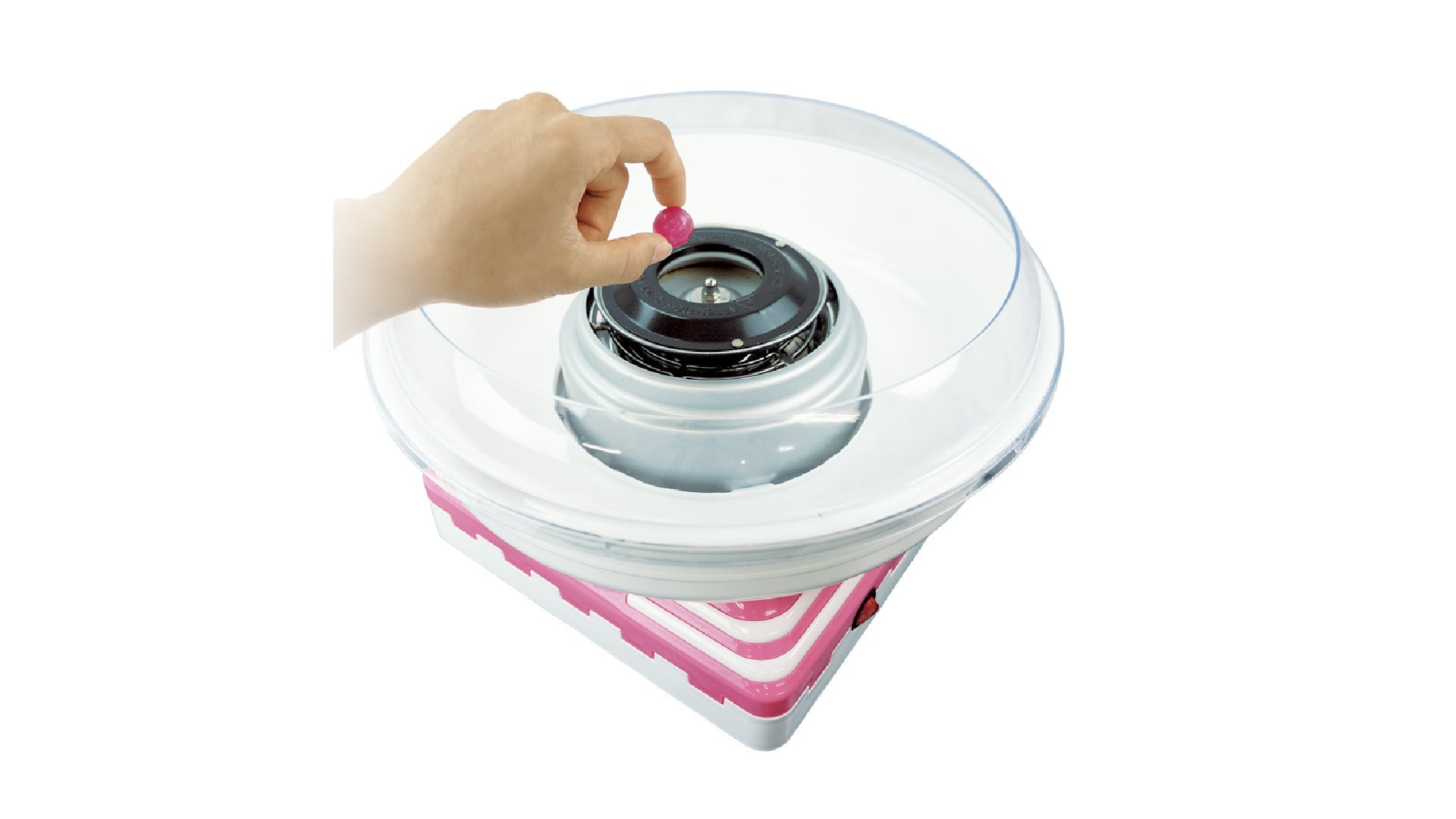 特徴:おうちで簡単に作れるわたあめメーカー♪市販のキャンディー飴、またはザラメを入れるだけで、フワフワの可愛いわたあめが作れます。色々な味のキャンディ飴を試して、カラフルで美味しい自分だけのわたあめを作ってみよう♪