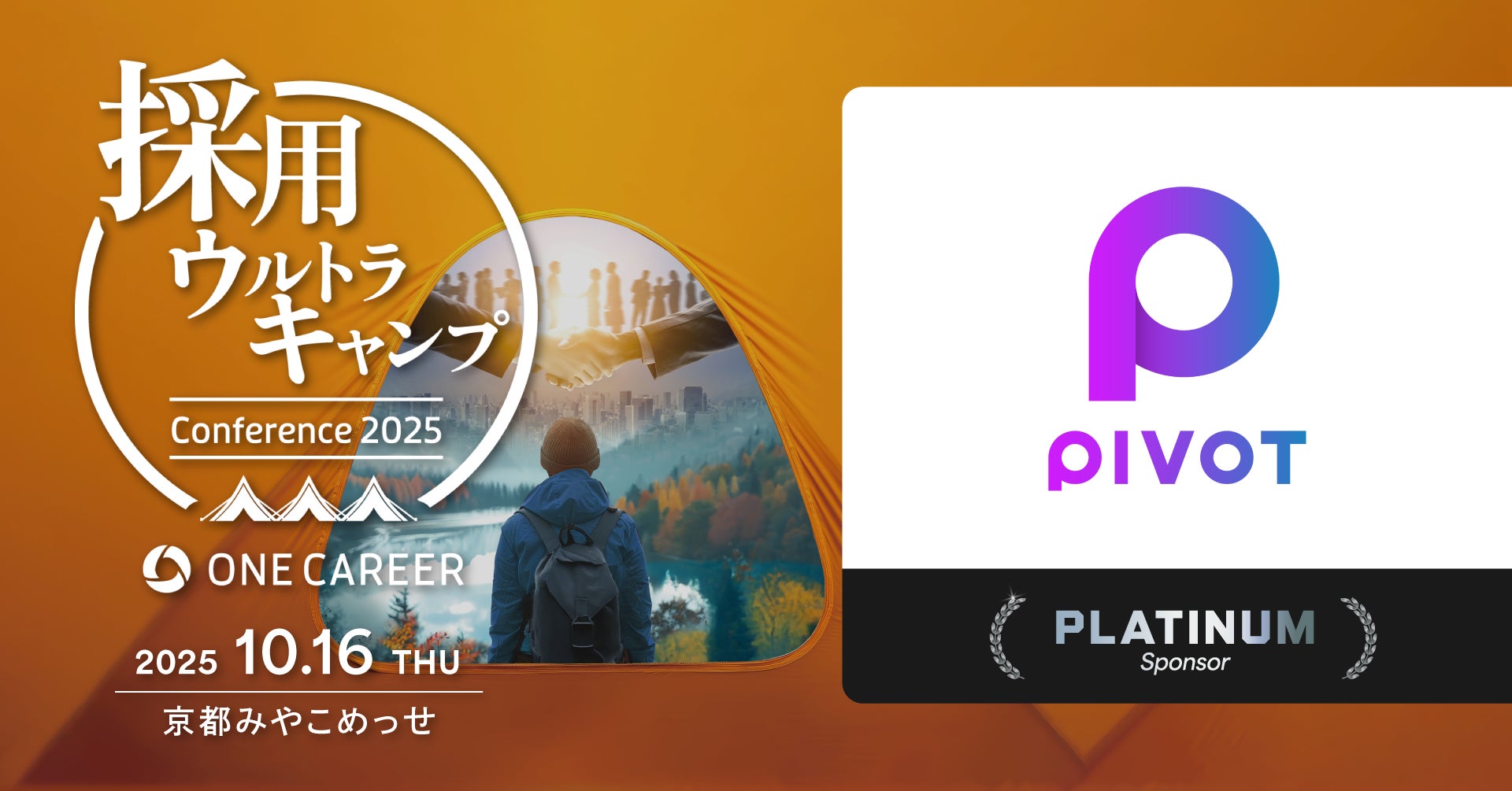 PIVOT株式会社(本社:東京都渋谷区、代表取締役:佐々木紀彦、以下PIVOT)は、人事向け採用クラウド「ONE CAREER CLOUD」を展開する株式会社ワンキャリア(本社:東京都渋谷区、代表取締役社長 執行役員CEO:宮下 尚之、以下ワンキャリア)が主催する大型カンファレンス『採用ウルトラキャンプ』(2025年10月16日(木)、京都市開催)のPLATINUMスポンサーに就任しました。