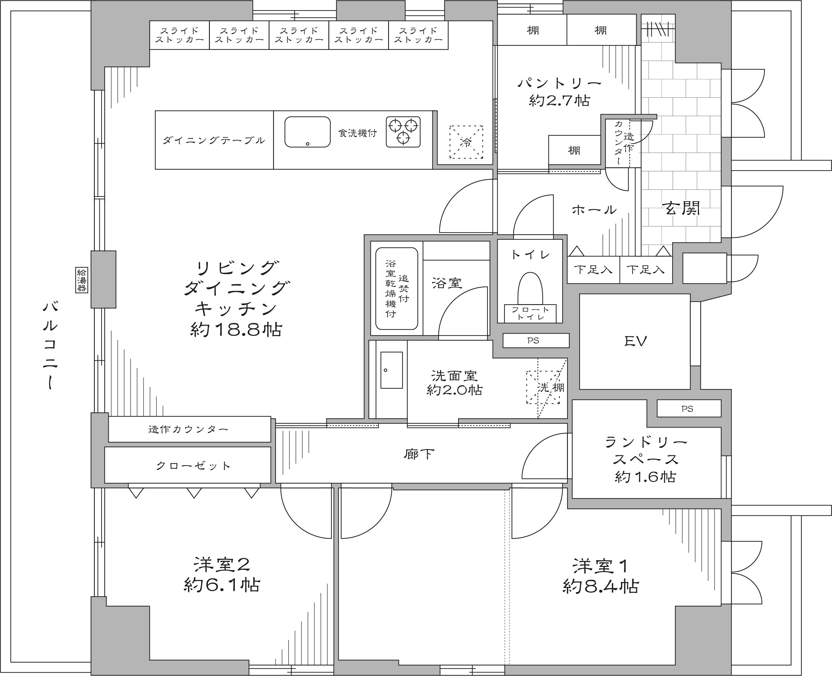 ローレルプラザ田町(東京都港区、91.68㎡、2LDK)