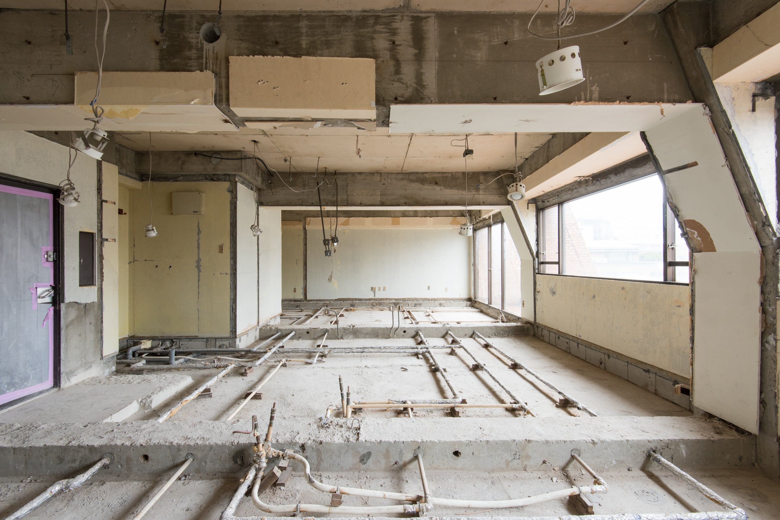 高円寺の地域柄に寄り添った、素材感を楽しめる遊び心のある空間です。床の無垢アカシア、天井壁の塗装だけではなく、壁一面のタイルや、リズミカルに並ぶ電球型照明、木枠の造作鏡、ガラス間仕切り越しに見える土間スペースなど、小さいながらも随所にオーダーリノベーションのギミックが詰まった内装を予定中。現在フルスケルトン工事中です。