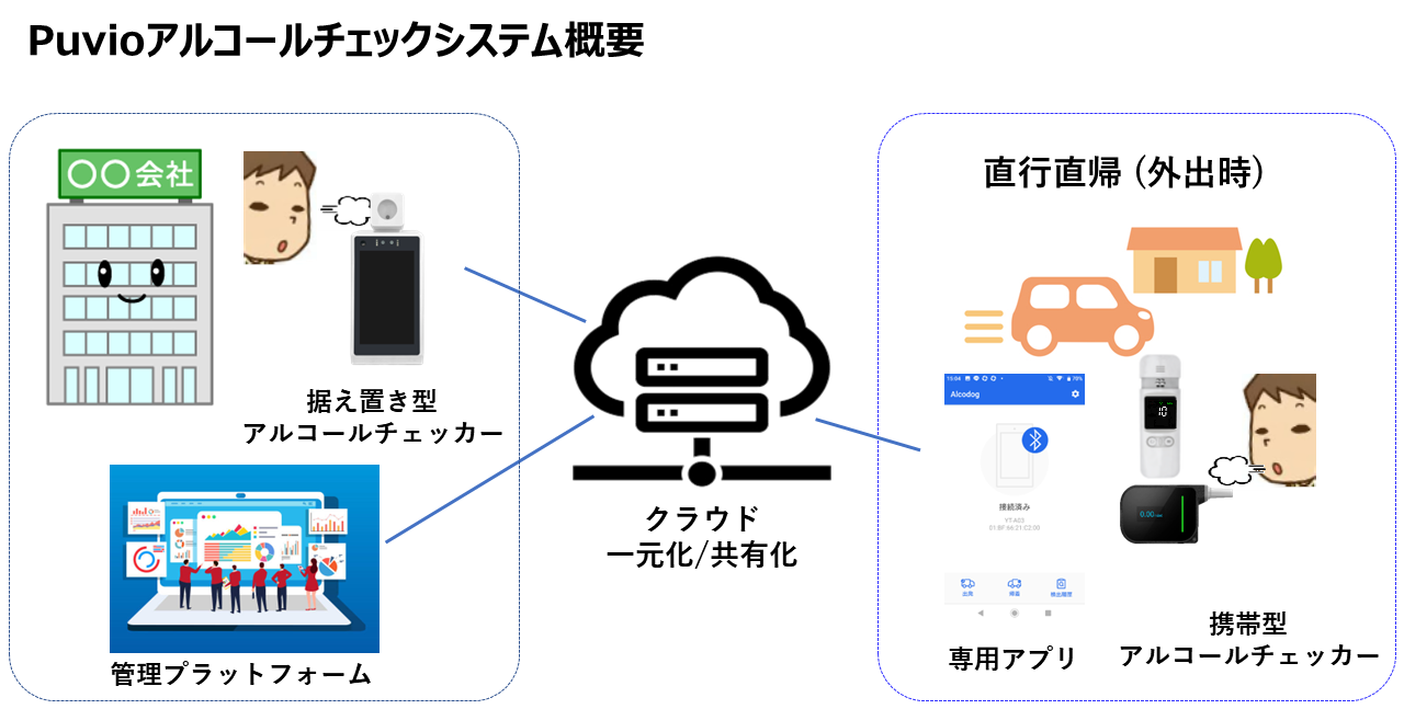 今般、IoT・AIソリューション開発の株式会社SGST(本社:東京都港区、代表取締役:小鹿泰光、以下当社)は、顔認証サーマルカメラとアルコール検知器をシステム連動させた、「Puvioアルコール チェッカー」を開発しました(11月製品リリース予定)。クラウドと連携することで、データの一元管理も可能になります。全国の対象事業体が購入しやすいよう競合製品に比べ安価な価格設定を予定しています。